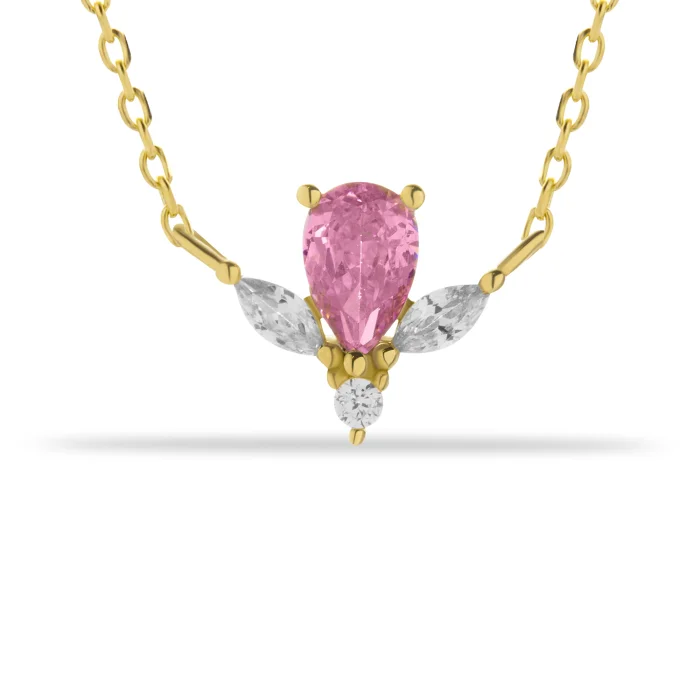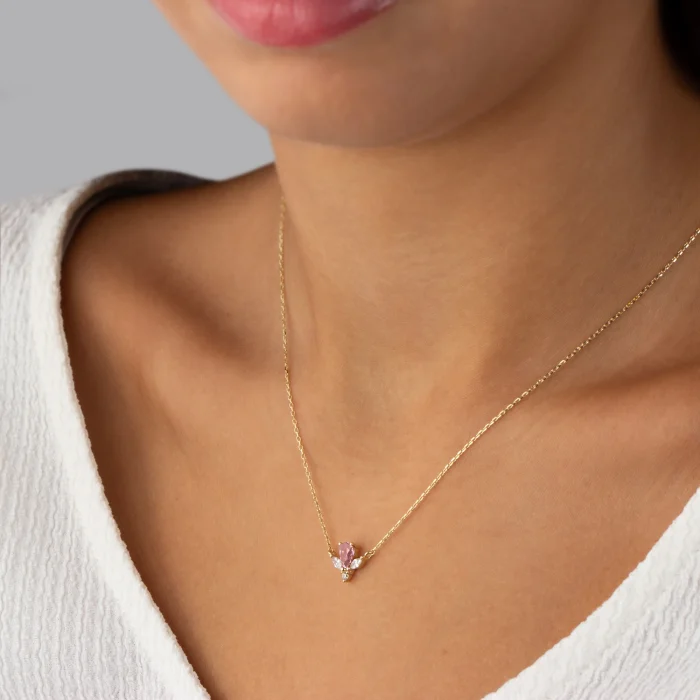 Product: 14k Gold Rose Quartz Stone Angel Necklace