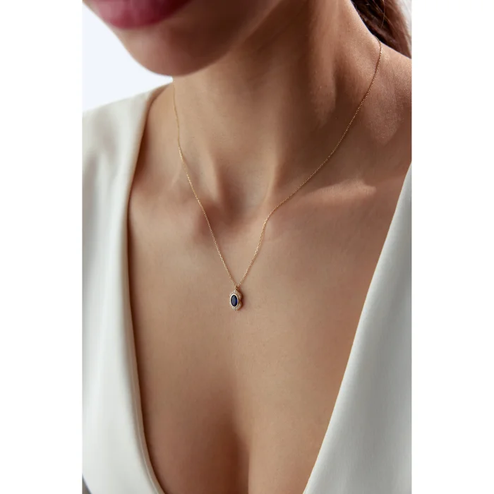 14k Gold Sapphire Stone Design Necklace