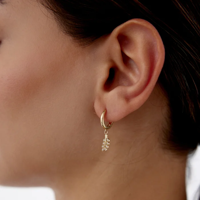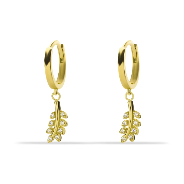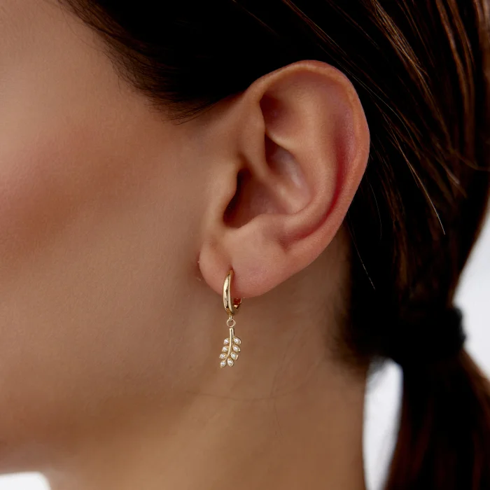 Product: 14k Gold Stone Leaf Hanging Earrings
