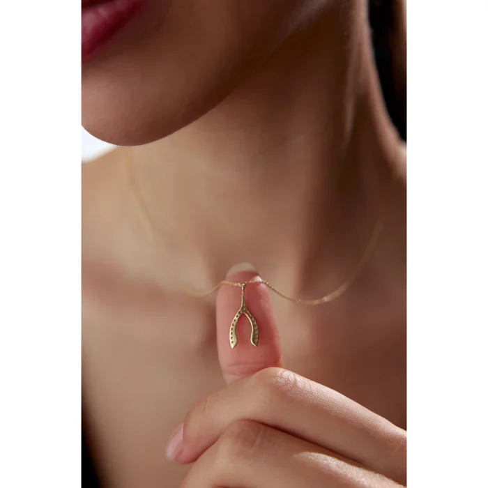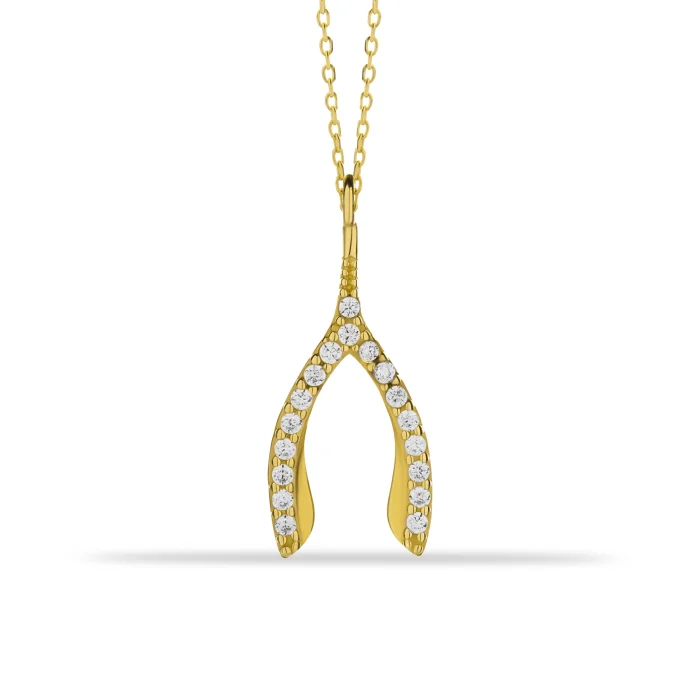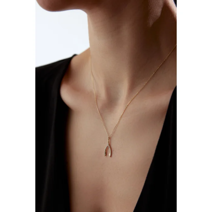 14k Gold Stone Wishbone Necklace
