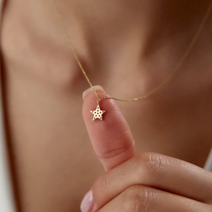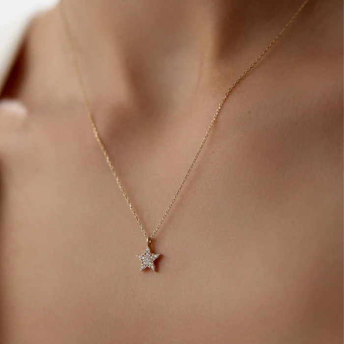Product: Minimal Star Necklace With 14 Carat Gold Stone