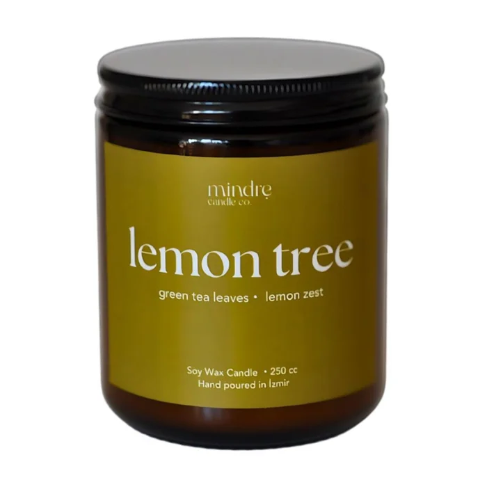 Mindre candles are prepared with 100% natural soy wax and carefully selected IFRA certified essences. The candle containers in the Mindre Amber series are heat-resistant glass jars and have aluminum lids, no plastic. After your candle is finished, you can continue to use it by cleaning the glass jar. Top Notes: Green Tea Leaves Middle Notes: Lemon Peel Burn time: Average 15-20 hours Size: 100 ml It is shipped with the cargo box.