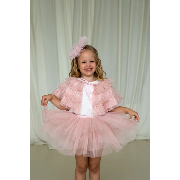 Powdery Pink layered tutu skirt with shorts inside. The inner shorts are made of cotton fabric.