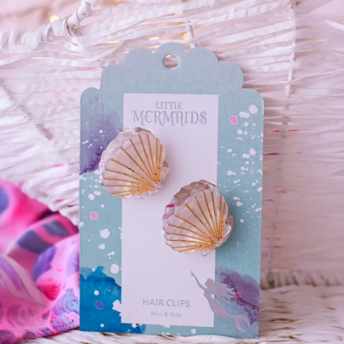 Little Mermaids Hair Clips Medium Product Description: Specially designed for little mermaids, seashell-shaped bone clips are a great choice for decorating your children's hair. Material: Acrylic Size: 3x4 cm