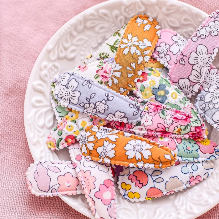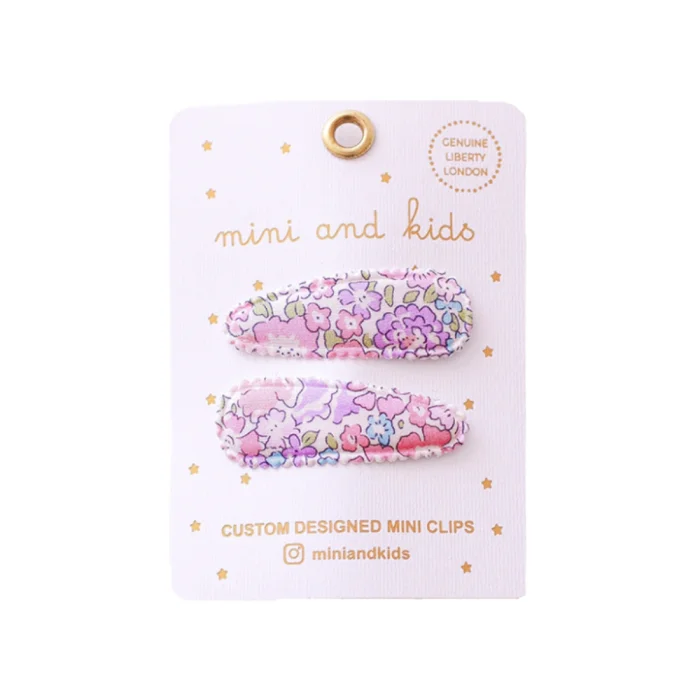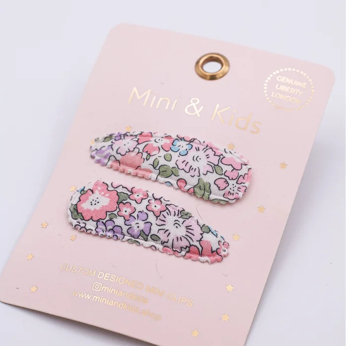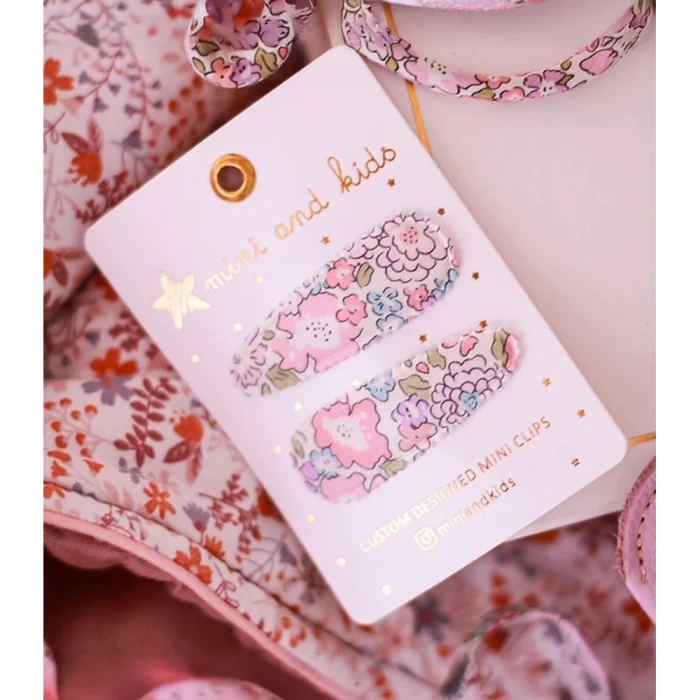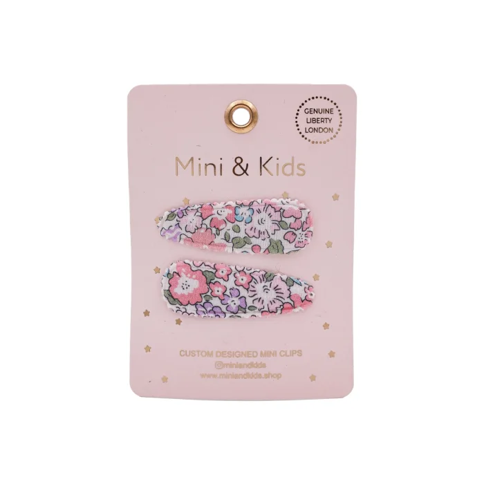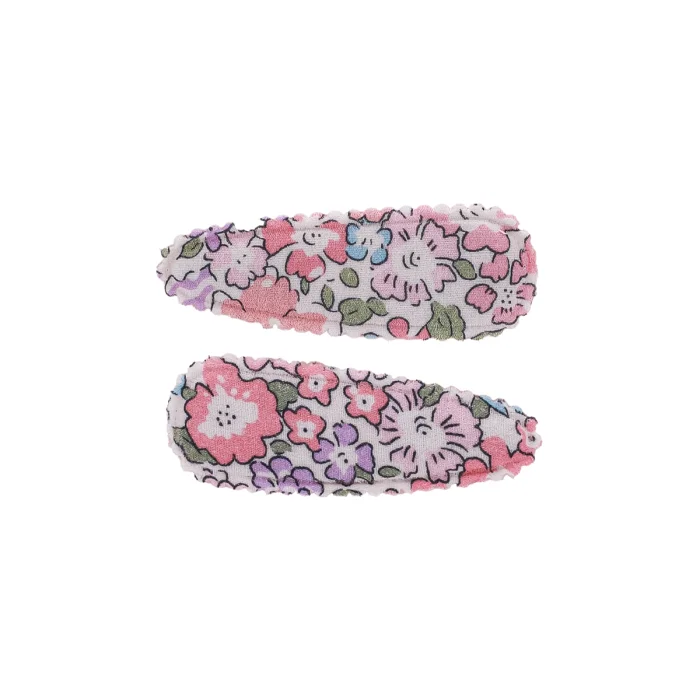 "Mini Clip Buckles Product Description: Mini Clips, with its great design and stylish colors of Liberty London patterns, combined with sparkling glitter details, make it the perfect hair accessory for little girls. Material: Premium fabric (Liberty London pattern) Size: 5.5 cm Colors: Pattern placement may vary."