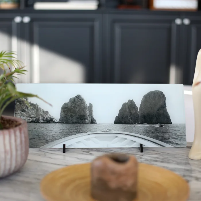 The photograph is printed in high-resolution HD quality using state-of-the-art UV printing machines on ultra-clear, first-class 4 mm tempered glass.