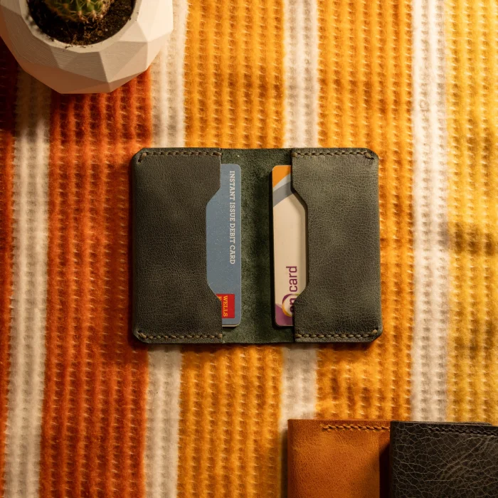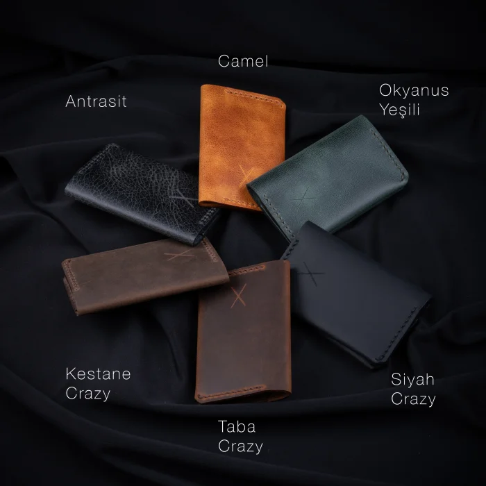 minimal X Fold Folding Card Holder Thin, useful and stylish card holder... Material: Genuine Calf Leather Closed Dimensions: 10.5 x 6.5 cm Leather Thickness: 1.3 - 1.4 mm Blank Thickness: 5.2 mm Its maximum capacity is 9-10 cards. Or a couple of banknotes along with 7-8 cards. Minimalist and Stylish Design. It is real leather and handmade. Our products are sent as a standard gift package. NOTE: Since it is real leather, there may be slight color tone differences. NOTE2: Products and pens other than the Leather Pen Holder are not included in the use of visual decoration purposes.