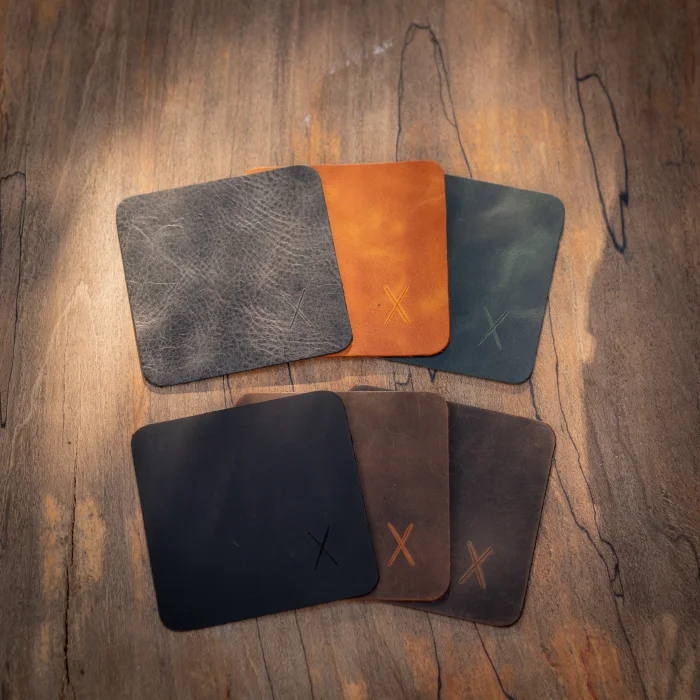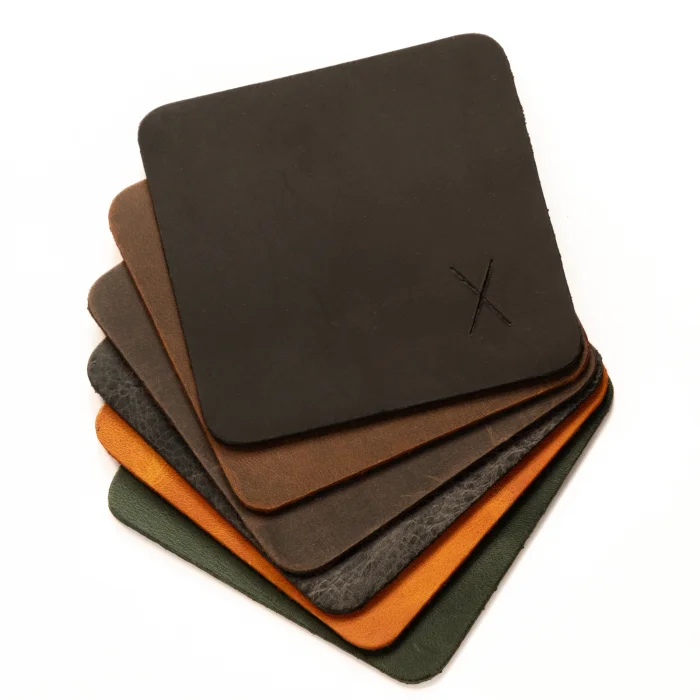 minimal X Coaster Set of 6 If Mixed is selected, 1 of each color is sent. Material: Genuine Calf Leather Leather thickness: 1.3 - 1.4 mm Product Dimensions: 10 x 10 cm Product Weight: 20 grams Minimalist and Stylish Design. It is real leather and handmade. Our products are sent as a standard gift package. NOTE: Since it is real leather, there may be slight color tone differences. NOTE2: Products other than Leather Cup Holder are used for visual decoration purposes and are not included.