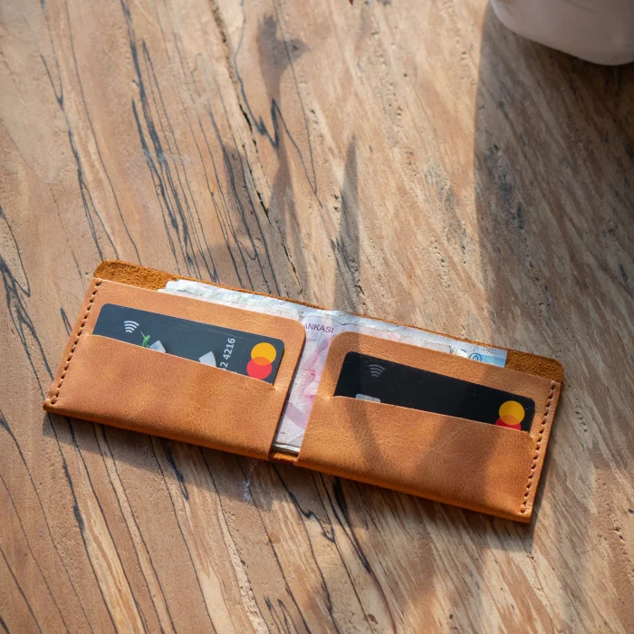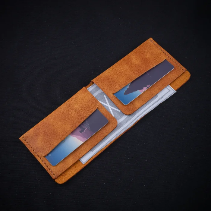 minimal X Coin Wallet Material: Genuine Calf Leather Closed Dimensions: 10.5 x 8 cm Leather Thickness: 1.3 - 1.4 mm Thickness of the empty wallet: 5.2 mm Product Weight: 40 Grams There are 2 card compartments and 1 money compartment. Minimalist and Stylish Design. It is real leather and handmade. Our products are sent as a standard gift package. NOTE: Since it is real leather, there may be slight color tone differences. NOTE2: Products other than Leather Wallet are used for visual décor purposes and are not included.