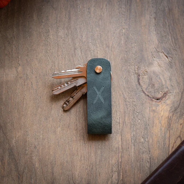 minimal X Long Keychain (2-3 or 3-4 Key Capacity) Material: Genuine Calf Leather Leather thickness: 1.3 - 1.4 mm Pin holding keys: Brass Closed product dimensions: 8.5 x 2.5 cm Product Weight: 20 grams Since the diameter of the pin holding the keys is 4mm, Keys with keyholes smaller than 4mm are not supported. Switches with a maximum length of 7.5 cm are supported. Some Switches can be thicker than normal, which can reduce the switch capacity from 3 to 2. Minimalist and Stylish Design. It is real leather and handmade. Our products are sent as a standard gift package. NOTE: Since it is real leather, there may be slight color tone differences. NOTE2: Products other than Leather Keychain are not included as used for visual décor purposes.