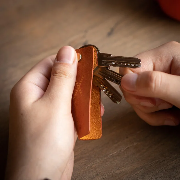 minimal X V Keychain Material: Genuine Calf Leather Leather thickness: 1.3 - 1.4 mm Closed product dimensions: 8 x 3 cm Product Weight: 20 grams Since the diameter of the pin holding the keys is 4mm, Keys with keyholes smaller than 4mm are not supported. Switches with a maximum length of 7.5 cm are supported. Some Switches can be thicker than normal, which can reduce the switch capacity from 3 to 2. Minimalist and Stylish Design. It is real leather and handmade. Our products are sent as a standard gift package. NOTE: Since it is real leather, there may be slight color tone differences. NOTE2: Products other than Leather Keychain are not included as used for visual décor purposes.