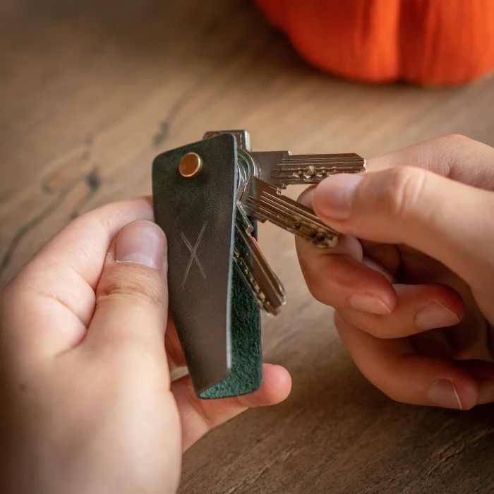 minimal X V Keychain Material: Genuine Calf Leather Leather thickness: 1.3 - 1.4 mm Closed product dimensions: 8 x 3 cm Product Weight: 20 grams Since the diameter of the pin holding the keys is 4mm, Keys with keyholes smaller than 4mm are not supported. Switches with a maximum length of 7.5 cm are supported. Some Switches can be thicker than normal, which can reduce the switch capacity from 3 to 2. Minimalist and Stylish Design. It is real leather and handmade. Our products are sent as a standard gift package. NOTE: Since it is real leather, there may be slight color tone differences. NOTE2: Products other than Leather Keychain are not included as used for visual décor purposes.