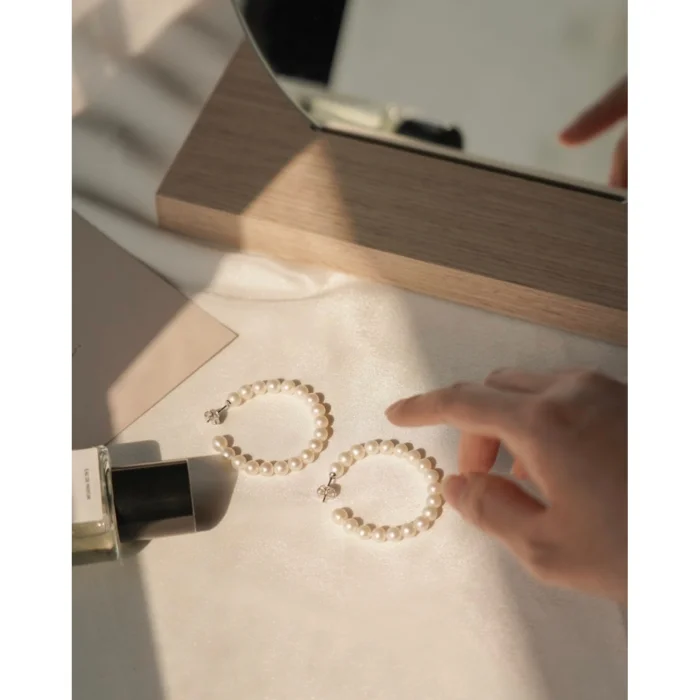Rhodium plated on 925 Sterling Silver, which is resistant to tarnishing. Natural Freshwater Pearl
