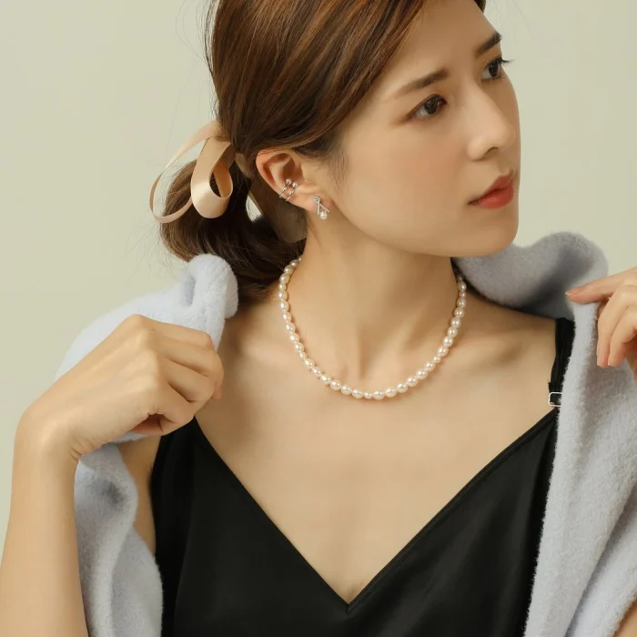 Rhodium plated on 925 Sterling Silver, which is resistant to tarnishing. Natural Freshwater Pearl