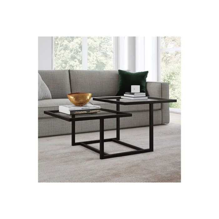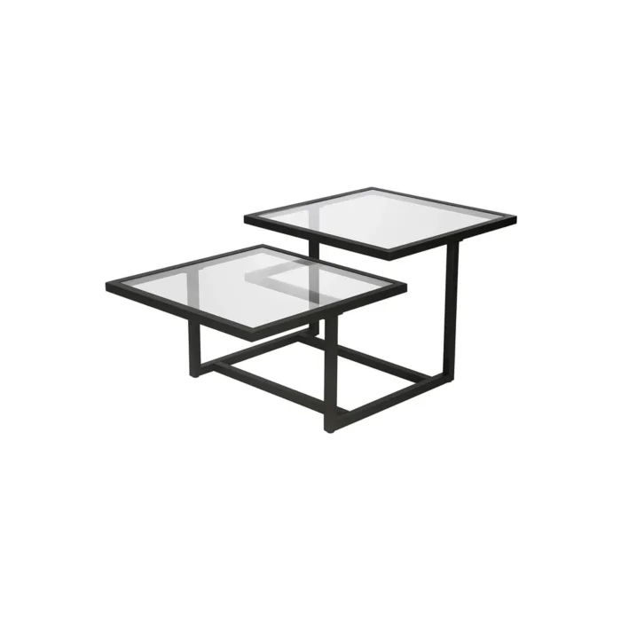 Material: Metal and clear tempered glass Size: 110x58x45h cm Color: Black Care: