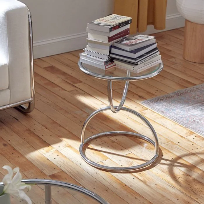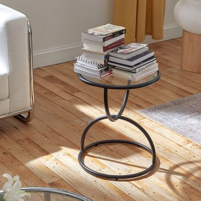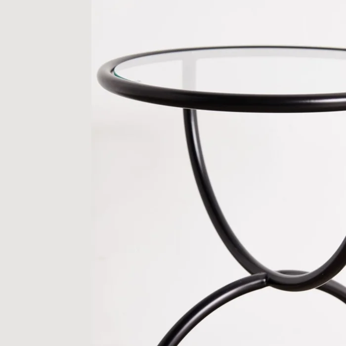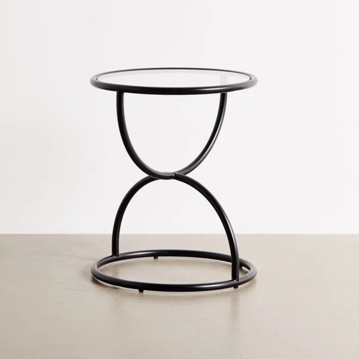 The side table made of metal pipe is painted with electrostatic oven paint. The table is 6mm thick glass.