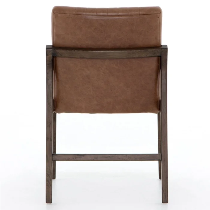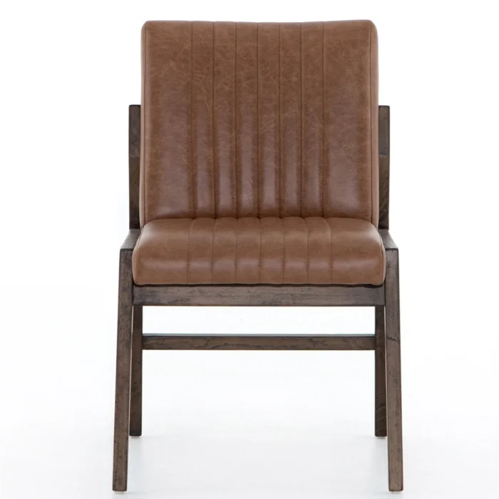 The wooden parts made of beech wood are painted with walnut varnish. The seat and back are made of artificial leather. It can be used as a single or dining table chair.