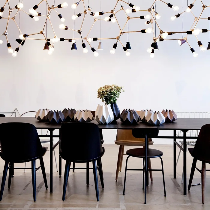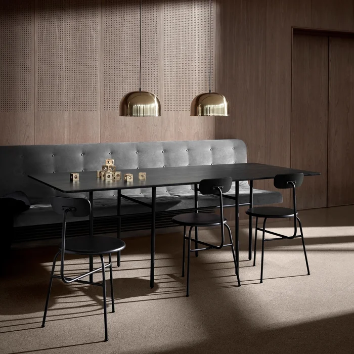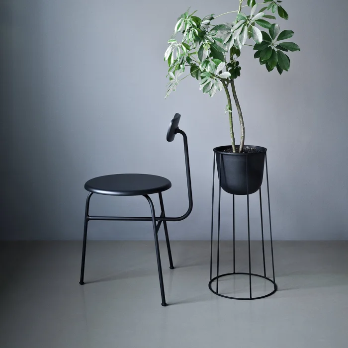 The parts made of metal pipes are painted with electrostatic oven paint. The seat and back are painted with matte lacquered black lacquer