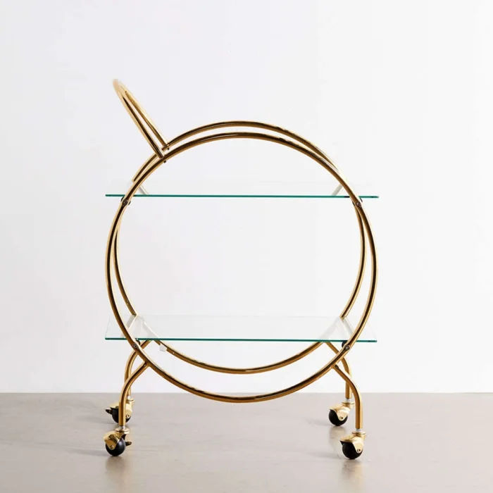 It is easy to use with wheeled feet. The metal parts are painted with electrostatic oven paint. The tables are 6 mm thick transparent glass.
