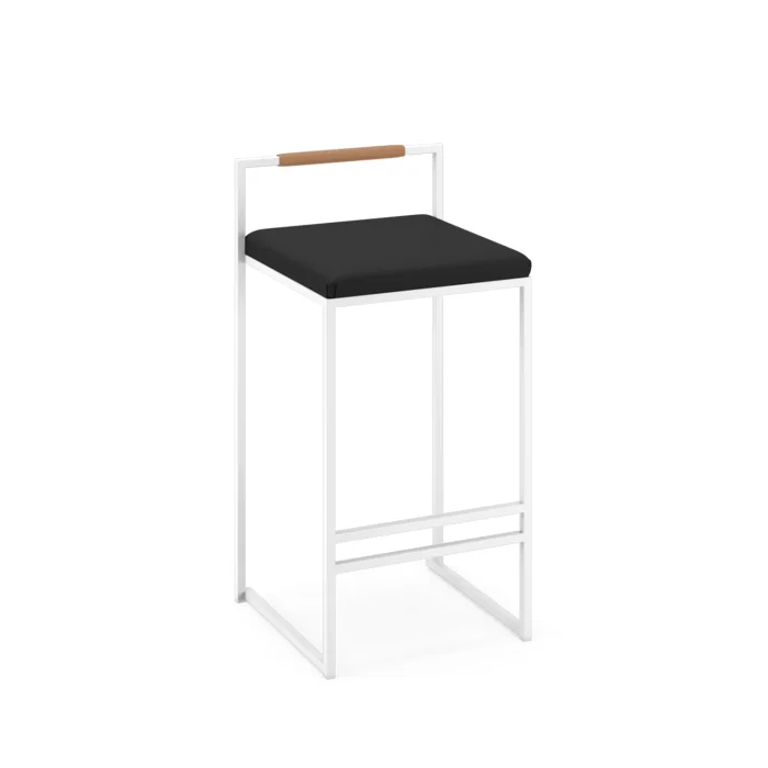 This bar chair, which consists of sharp frames, is made of profile iron. 32 Dns sponge is used on the seat and it is covered with artificial leather. The metal parts are painted with electrostatic oven paint. There is a faux leather covered handle on the back.