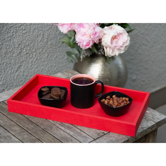 Large Coral Red Faux Leather Tray