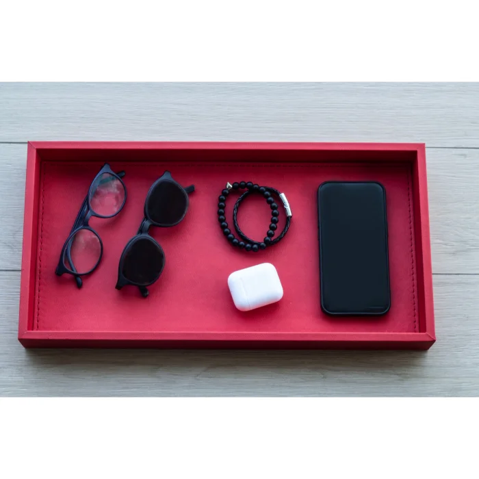 Product: Large Coral Red Faux Leather Tray