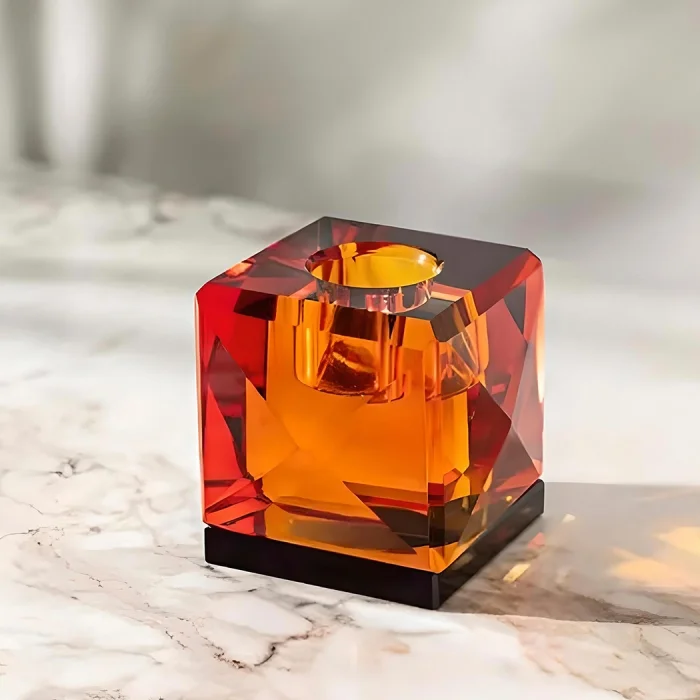 Product: Orange/black Sparkle Dice Shape Glass Candlestick - Modern And Stylish Decor Option