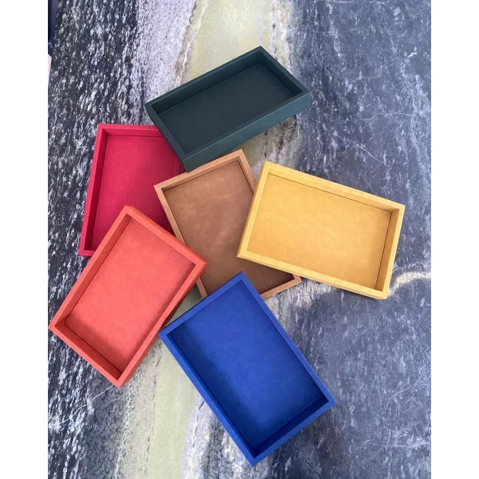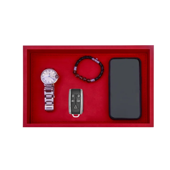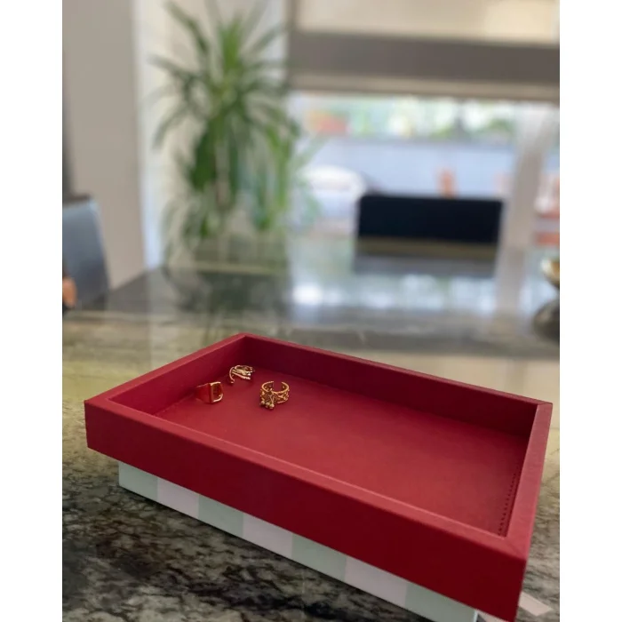 Product: Small Coral Red Faux Leather Tray