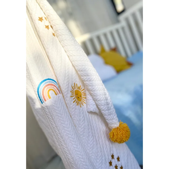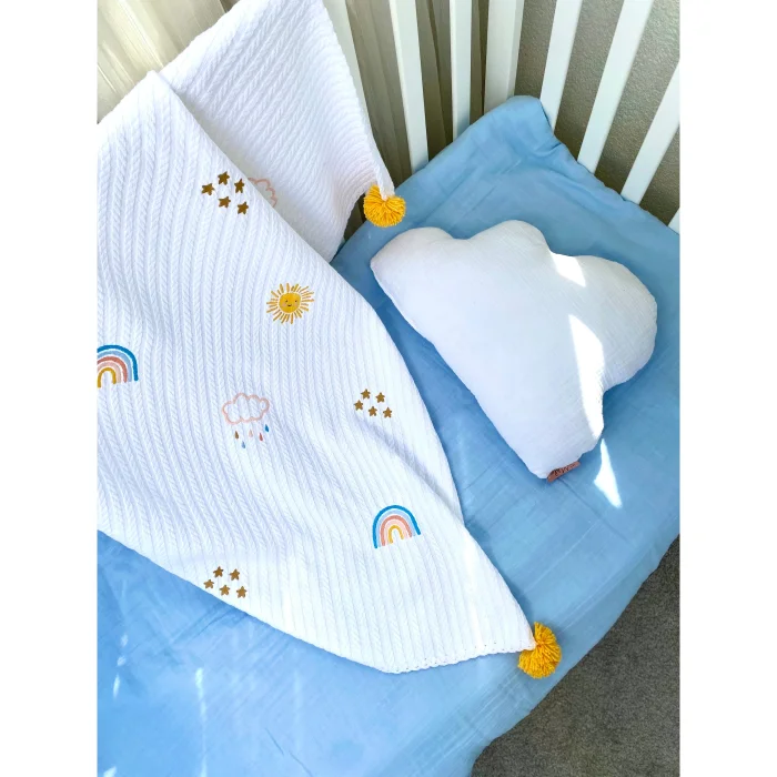 baby blanket with pompoms
