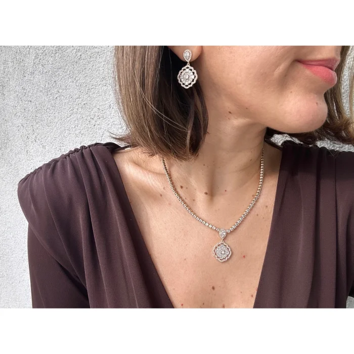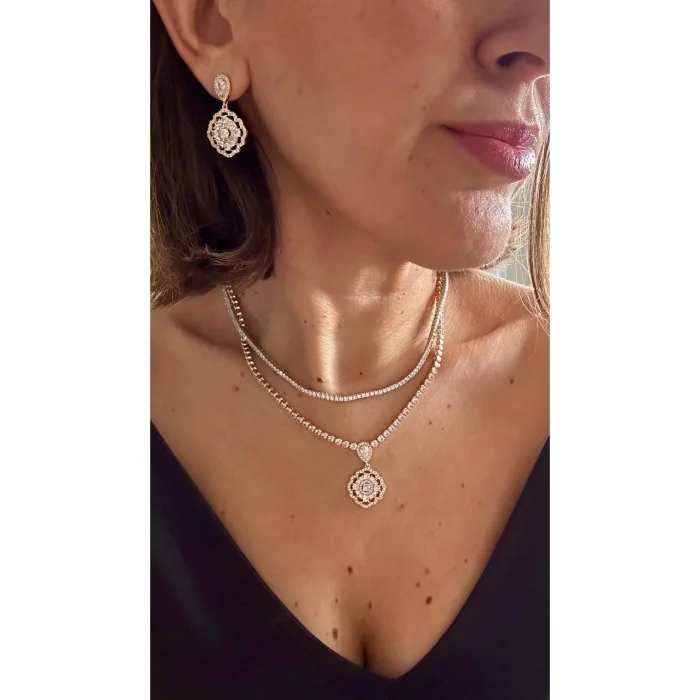 We use real zircon and Swarovski stones in our products. The stones were engraved on the products not by gluing, but by setting technique.