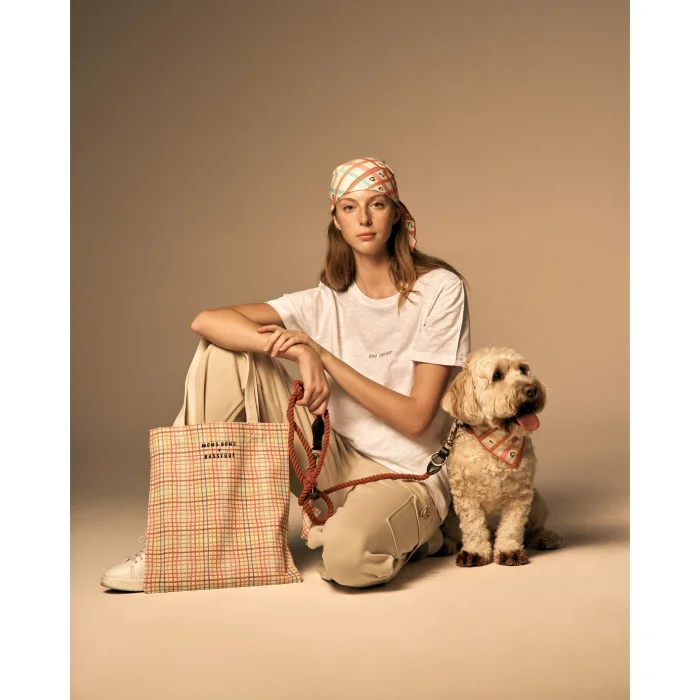 Specially designed cotton scarf for the Mons Bons x Bassigue collaboration. It is suitable for use as a hair and neck accessory.