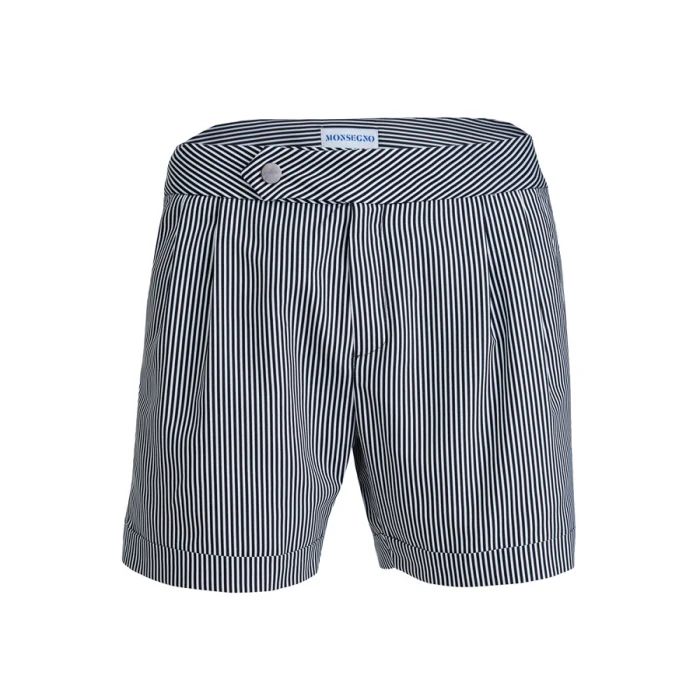 Double pleated, turned up cuffs, thick belt, classical swim short, 2 side pockets and a fleeted back pocket.