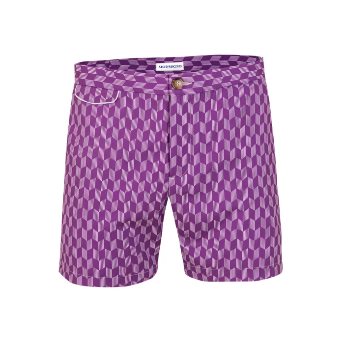 Adjustable side fasteners,bias along side pockets, fleted back pocket, slim fit swimshort.
