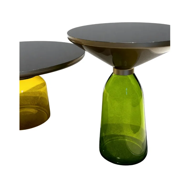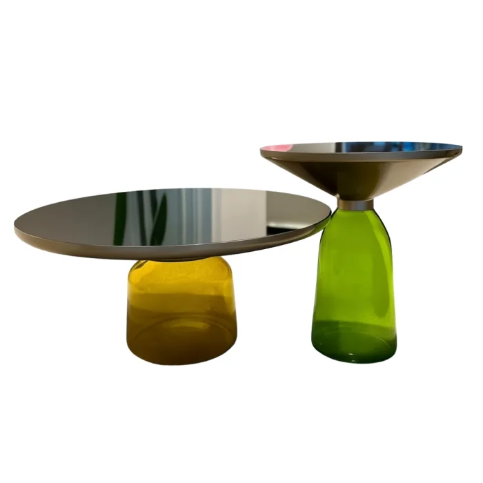 Inspired by Italy's deep-rooted glass art, Arcobaleno 2-Piece Side Table consists of an elegant combination of a mirror top on a colored glass leg.