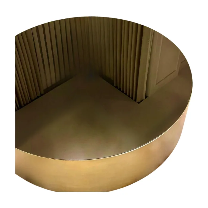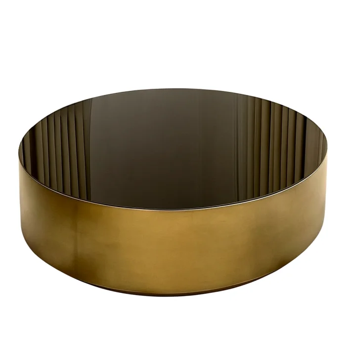 Solido Coffee Table Product Dimensions: 100x30 cm While bringing the past to the present with its aged gold colored lacquer polish on MDF; It adds depth to the space with its smoked mirror on the upper surface.