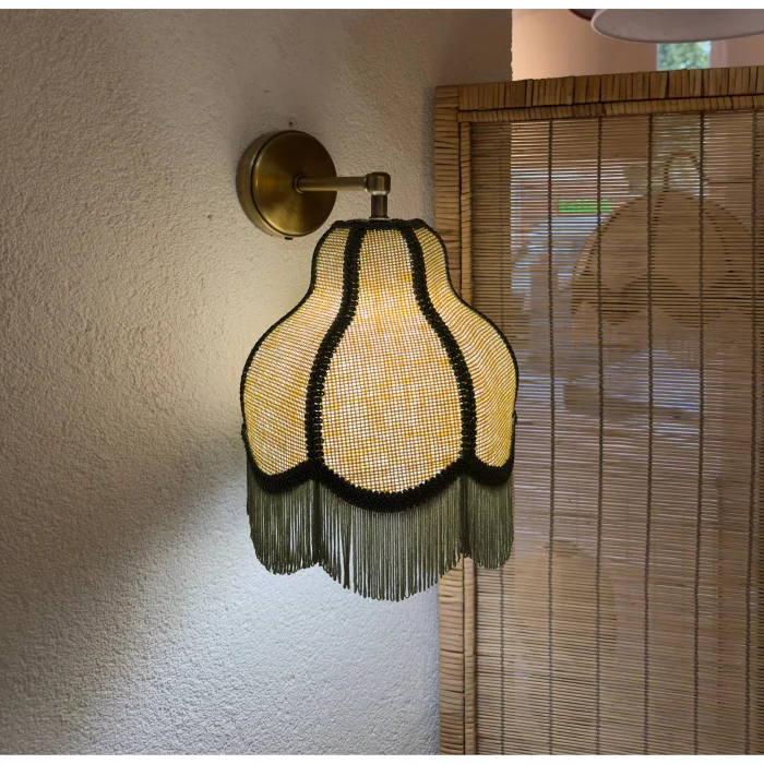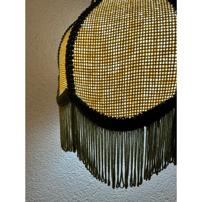 The combination of brass body pieces and natural jute fabric with tassels is a complementary part of your decoration.