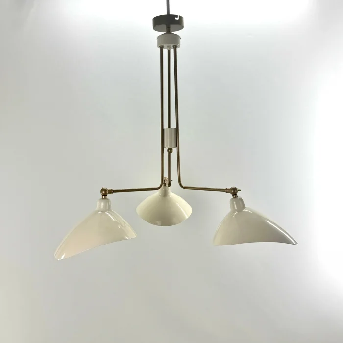 Thanks to the moving mechanism in the head, the hood can move up and down. Product Dimensions: Width: 65 cm Depth: 65 cm Length: 70 cm Materials: Brass coating and electrostatic painted metal E-27 It works with standard bulbs.