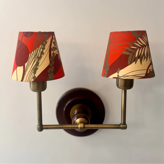 Lisbon Twin is a unique lighting and wall décor with sconces, brass pieces, cotton fabric and natural wood details.
