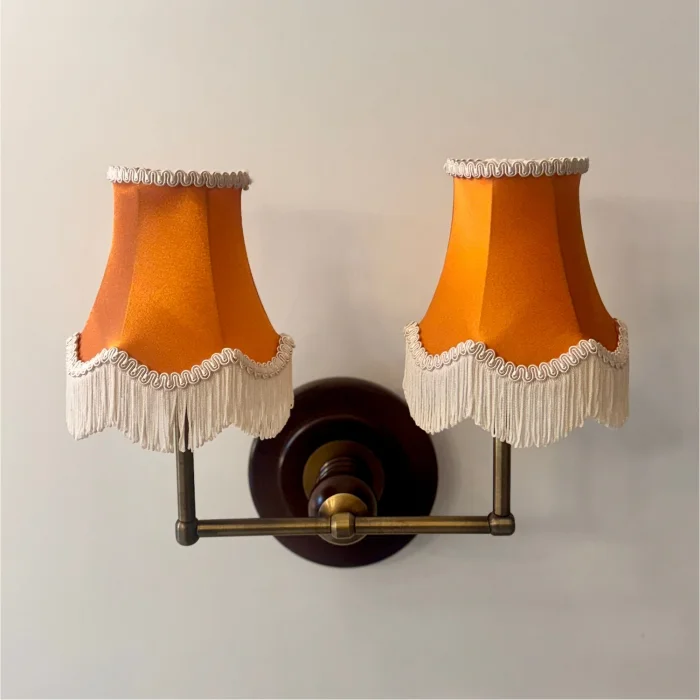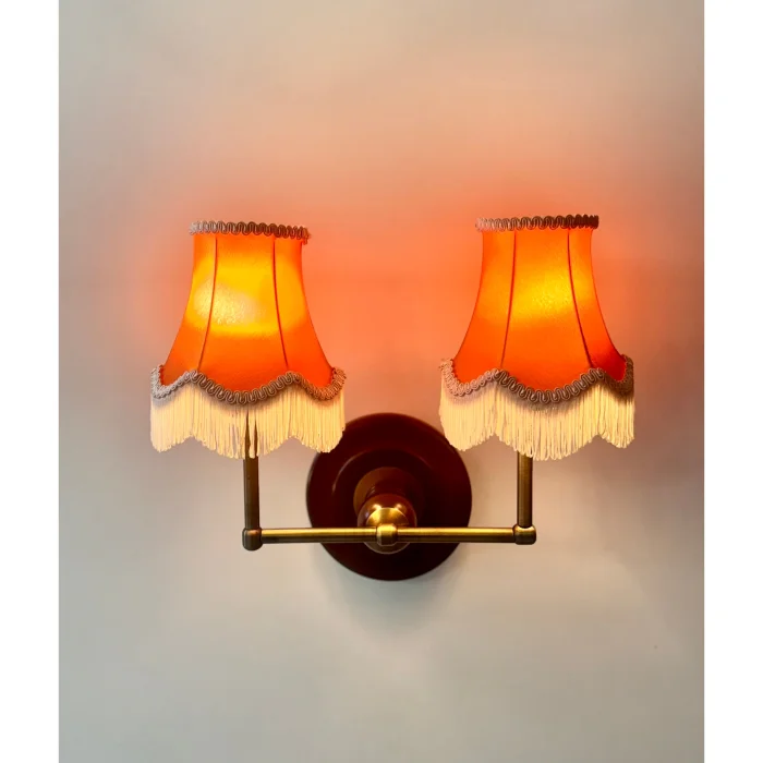 Vivaldi Twin is a unique lighting and wall décor with sconce, brass pieces, satin fabric, cotton tassel and natural wood details.