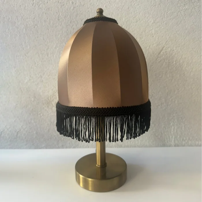 Minito is handmade from silk satin fabric, choose the color you want to create a focal point for your home. Product Dimensions: Width: 22 cm Height: 32 cm Materials: Body: Metal Head: Silk-satin blend fabric tufted headboard E-27 Lampholder There is a 2 meter on/off switch cord fabric copper plug cable on the product.