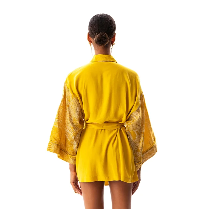 •Long bat sleeved robe with belted waist. •Full length 75 cm from the neck. •Soft silky vegan fabric.