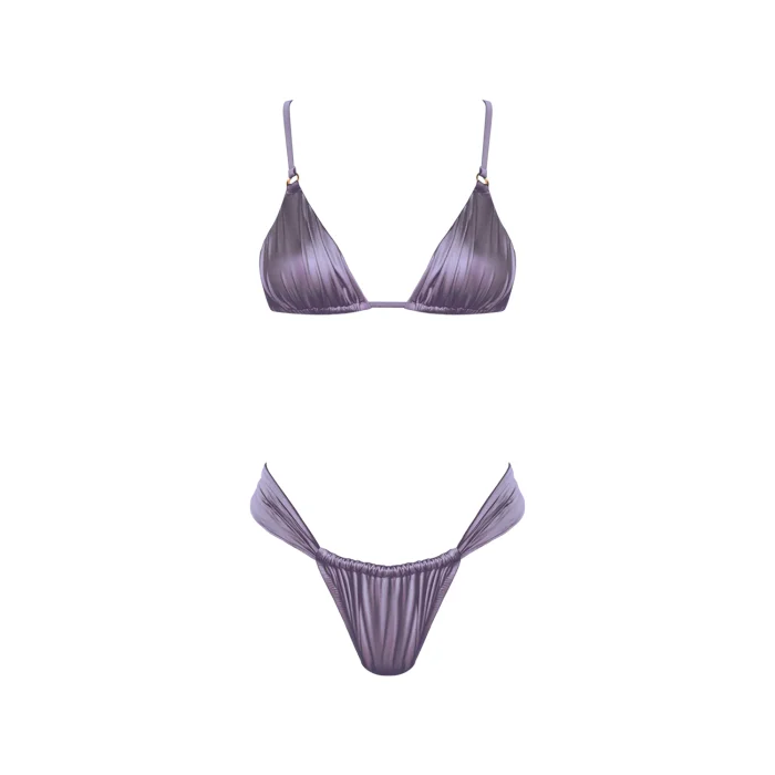 Triangle top with adjustable straps. Flattering sheer bikini bottom. Smooth stretch lining for extra comfort. Removable push up paddings.