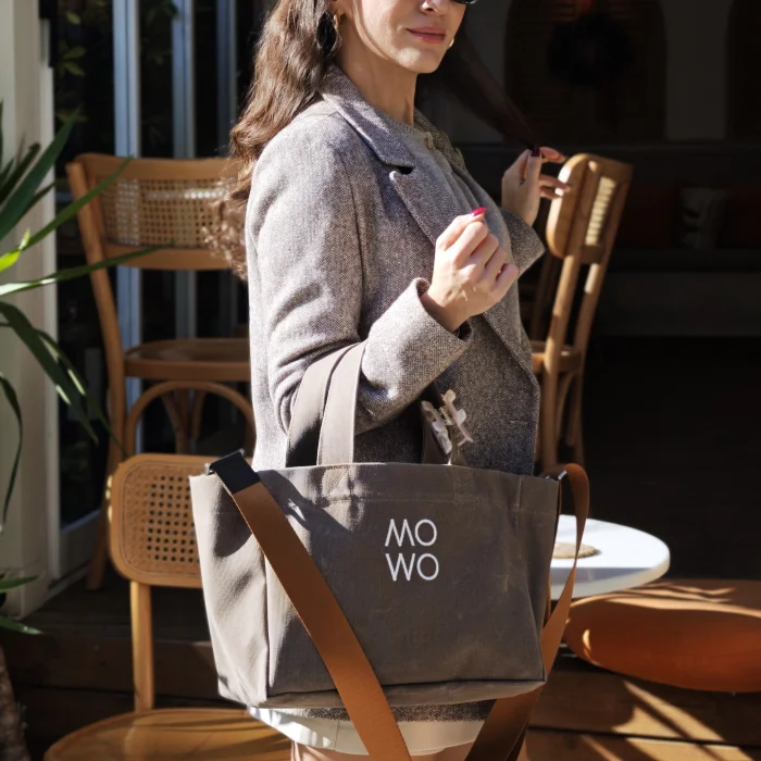 The Mowo waxed canvas bag is a lightweight, sturdy, and water-resistant bag.