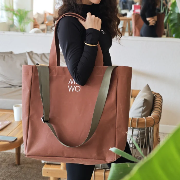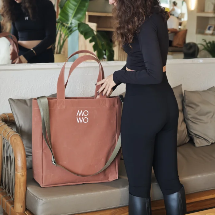 The Mowo waxed canvas bag is a lightweight, sturdy, and water-resistant bag.