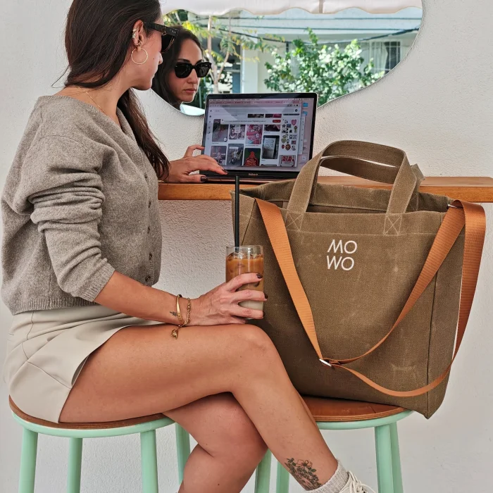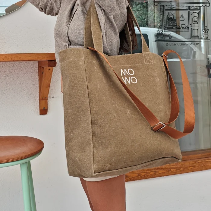The Mowo waxed canvas bag is a lightweight, sturdy, and water-resistant bag.