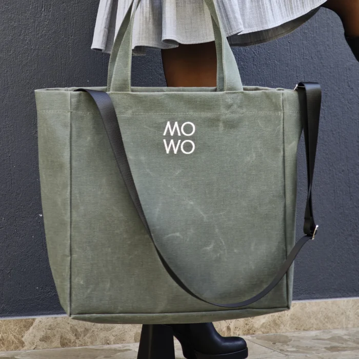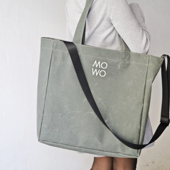 The Mowo waxed canvas bag is a lightweight, sturdy, and water-resistant bag.