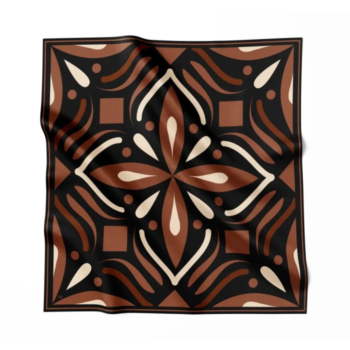 With its rich coffee and cream tones, this scarf adds a sophisticated touch to both your everyday looks and your most special moments. The soft silk fabric gently caresses your skin, while the modern interpretation of traditional patterns takes you on a journey filled with history and art.