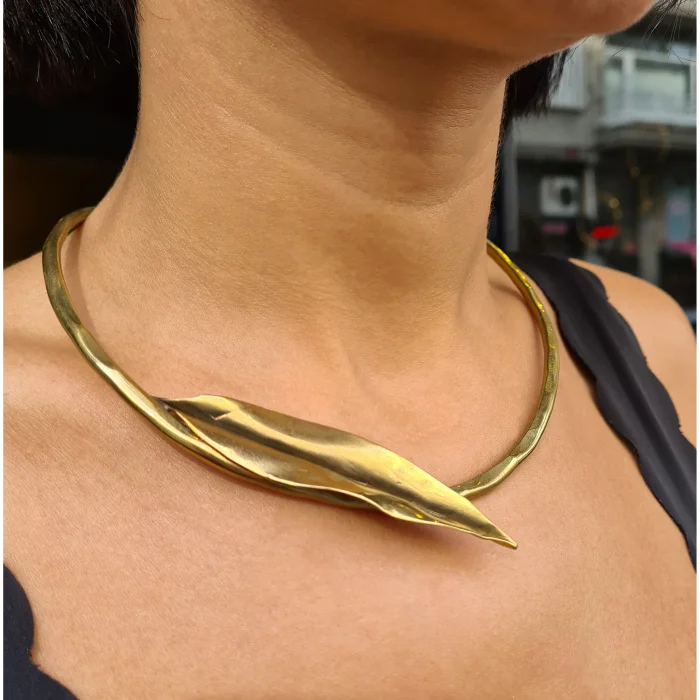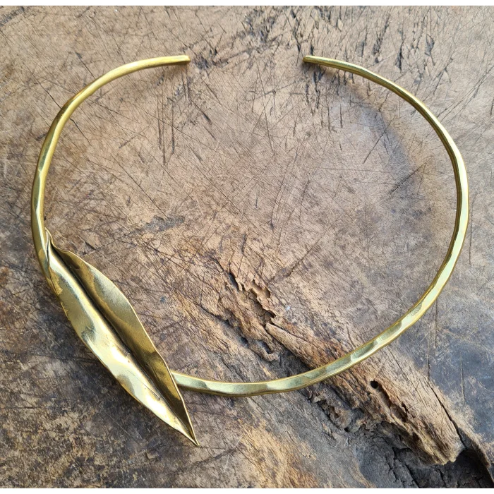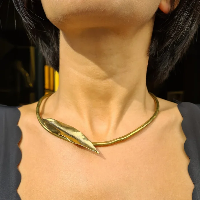 Product: Brutalist Choker Necklace With An Olive Leaf