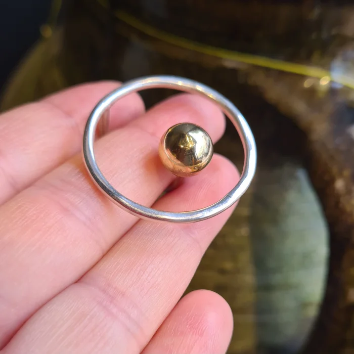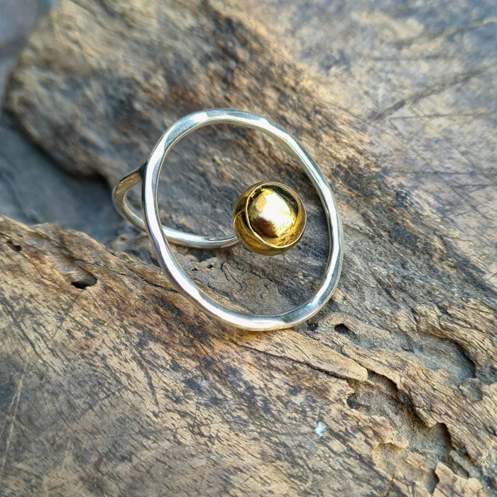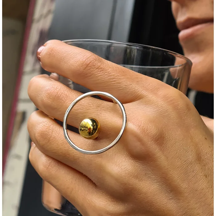 Product: Geometric Silver Circle Ring With A Golden Ball