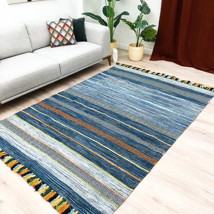 Trb 02 Scandinavian Cotton Rug completes the decoration of your home with its natural and minimalist design. It is produced with hand-woven technique and each pattern is carefully embroidered